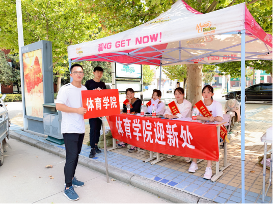 早在几天前,我们体育学院就在李科长,徐书记的带领下布置迎新活动,对新生引导和安排进行了统一的规范。